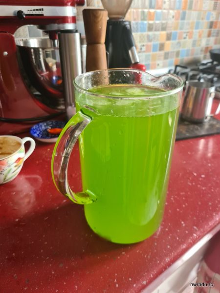 Pornim apoi blenderul până când menta dispare sau până când rămân niște particule atât de mici de mentă încât nu te deranjează când le bei. Dacă vreți, o puteți chiar filtra sau “spumării“. Noi avem un blender de mare putere și de obicei acesta răvășește menta de parcă ar avea ciudă mare pe ea.