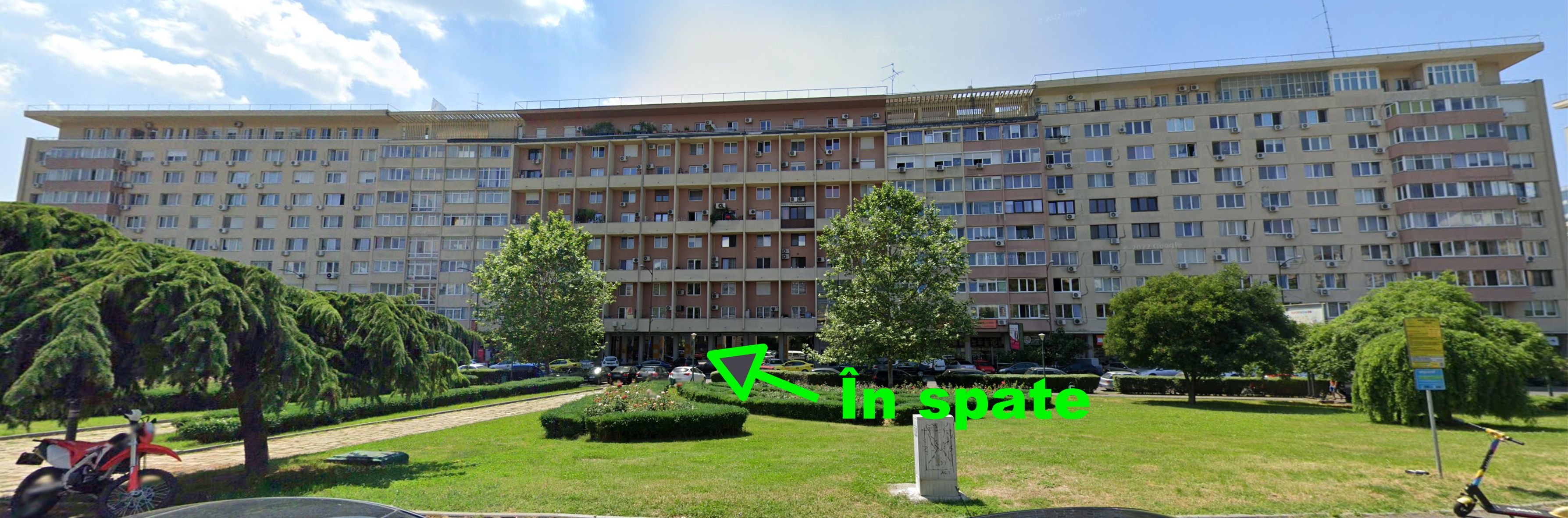 Vizavi de Sala Palatului este un bloc cu coloane la parter. Dacă treci în spatele lui printr-unul din gangurile de acolo… dai de alt bloc, mai vechi. Acest bloc mai vechi se intersectează la unghi ascuțit cu blocul mai nou.
