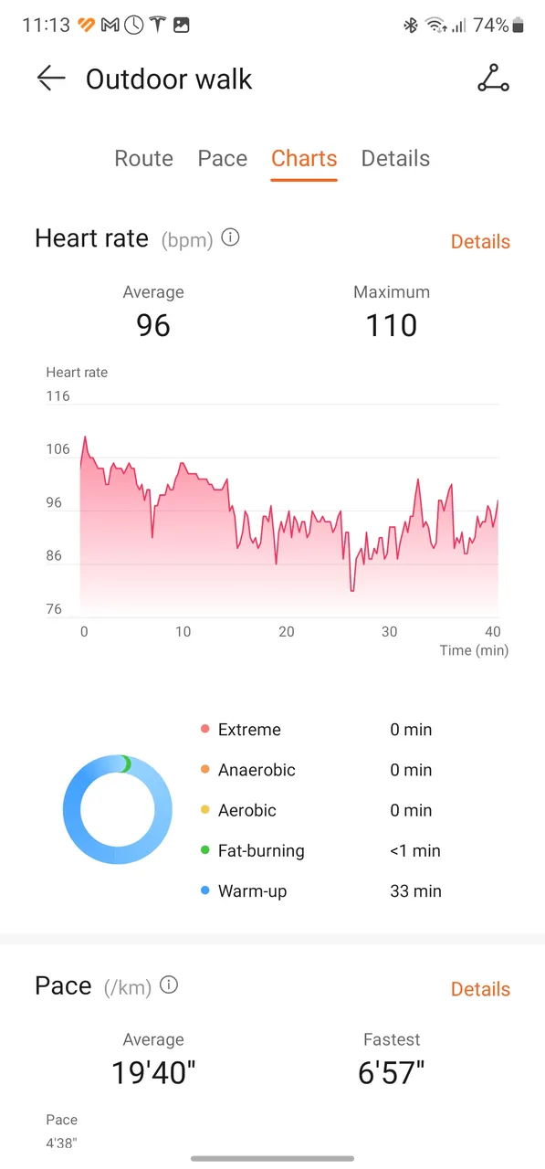 În timp ce faci un exercițiu fizic, ceasul îți arată evoluția în timp și pulsul și în ce stadiu de activitate te afli (cardio, fat burn etc). Din kilometru în kilometru îți poate recita câțiva indicatori, ca să știi evoluția lor. N-am sesizat ceva nou față de alte ceasuri Huawei testate de mine, dar partea aceasta de fitness mi s-a părut mereu bine pusă la punct și probabil va fi pe placul marii majorități a oamenilor interesați de sport și mișcare.