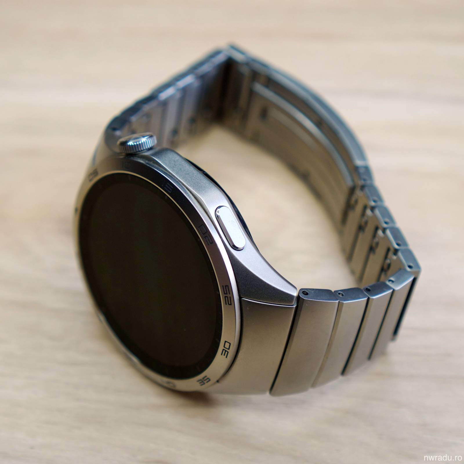 Carcasa lui Watch GT4 este din inox, după cum spuneam, are rating IP68 și rezistă la 5 atmosfere în apă, deci poți face și scufundări ușoare cu acest ceas la mână. Sticla de pe ecran nu este vreuna cunoscută pentru rezistența ei, acesta fiind probabil singurul minus al construcției. Greutatea ceasului este de 48 de grame (fără curea) și are maxim 11 mm grosime.