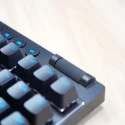 Tastele, apropo, sunt din PBT dublu-injectat, care este considerată soluția premium pentru tastaturi. Se montează pe suport standard în cruce, deci la o adică poți înlocui tastele cu unele 3rd party cumpărate de pe net (unii vor anumite taste de culori diferite sau făcute din alte materiale sau particularizate cu numele echipei lor). Tastele au și iluminare RGB individuală. Ochiometric profilul lor mi s-a părut OEM.