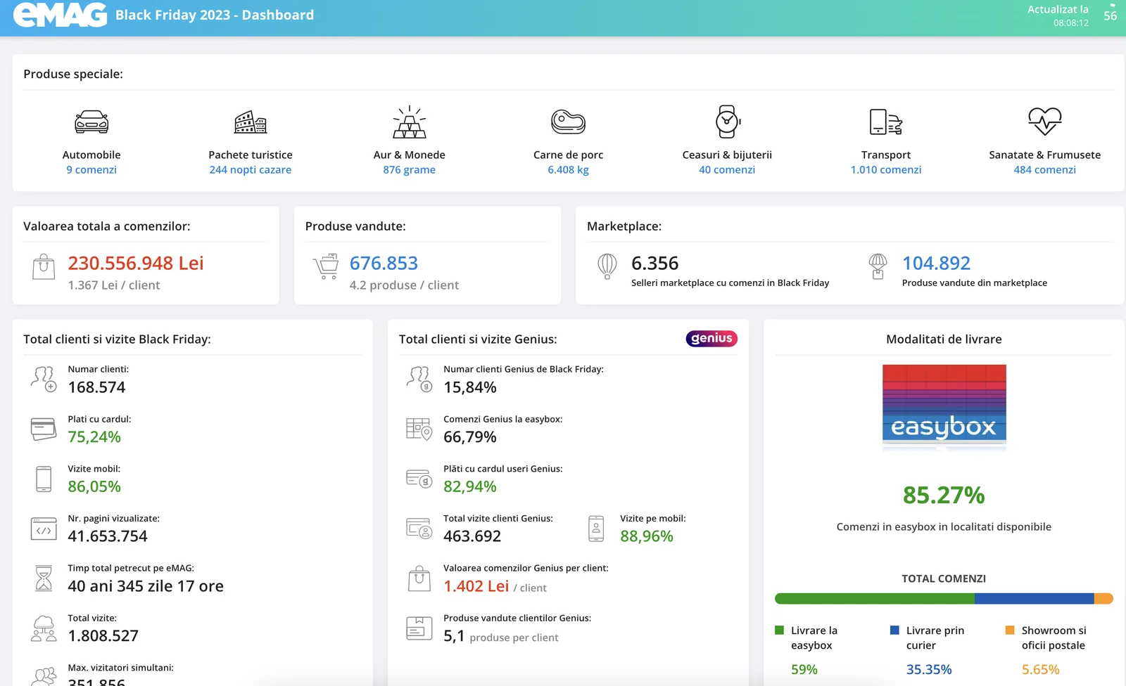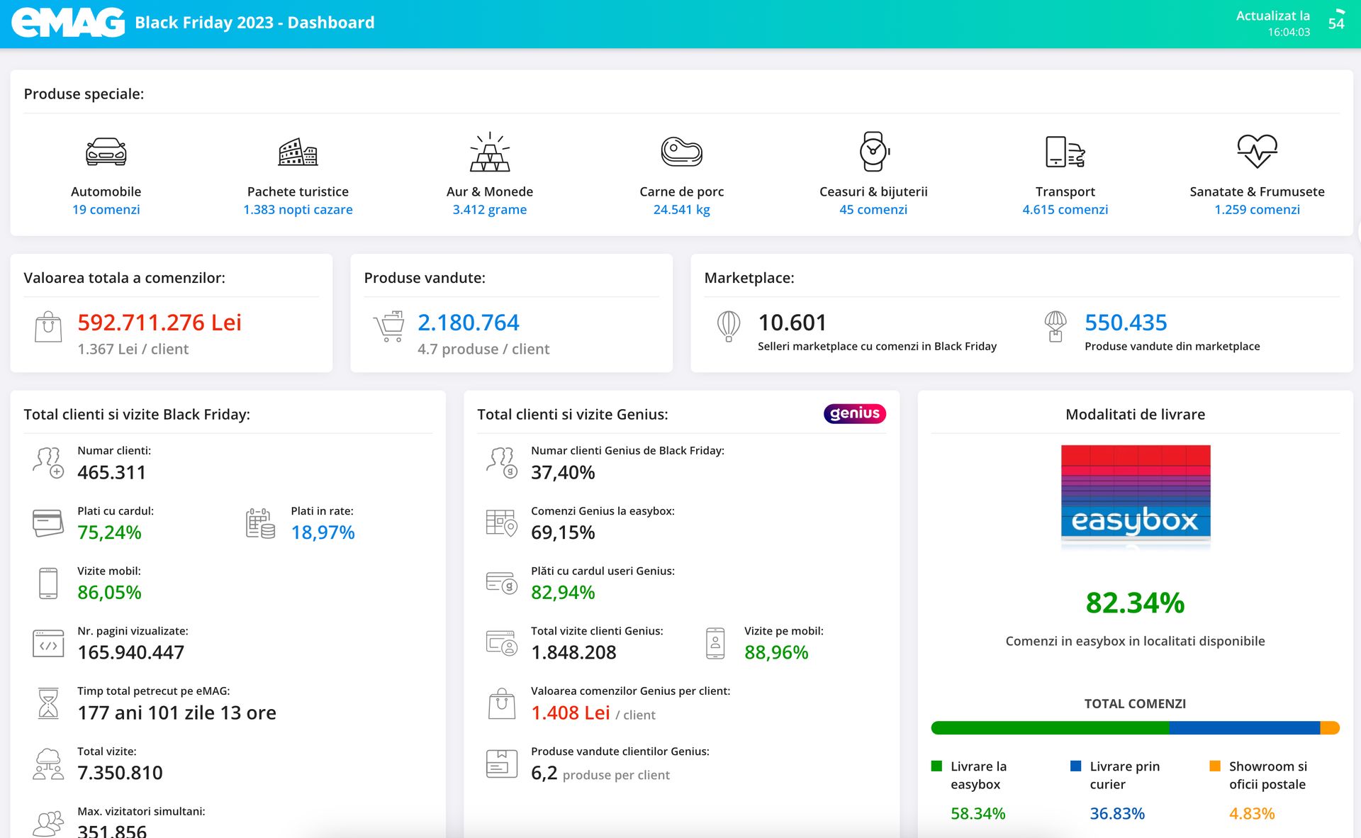 eMAG este la un pas de borna de 700 de milioane, depășind deja targetul setat de ei pentru întreaga zi. Promoțiile țin până la ora 2 noaptea, deci probabil ajung la 720 de milioane.