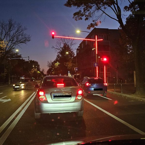 Nu sunt sigur dacă este de bine sau de rău. Adică probabil este testat acolo de Administrația Drumurilor și bine că fac asta, dar nu pot spune că i-am văzut utilitatea în configurația dată. N-am avut niciodată probleme în a vedea un semafor, în special cele mai noi cu LED-uri puternice.