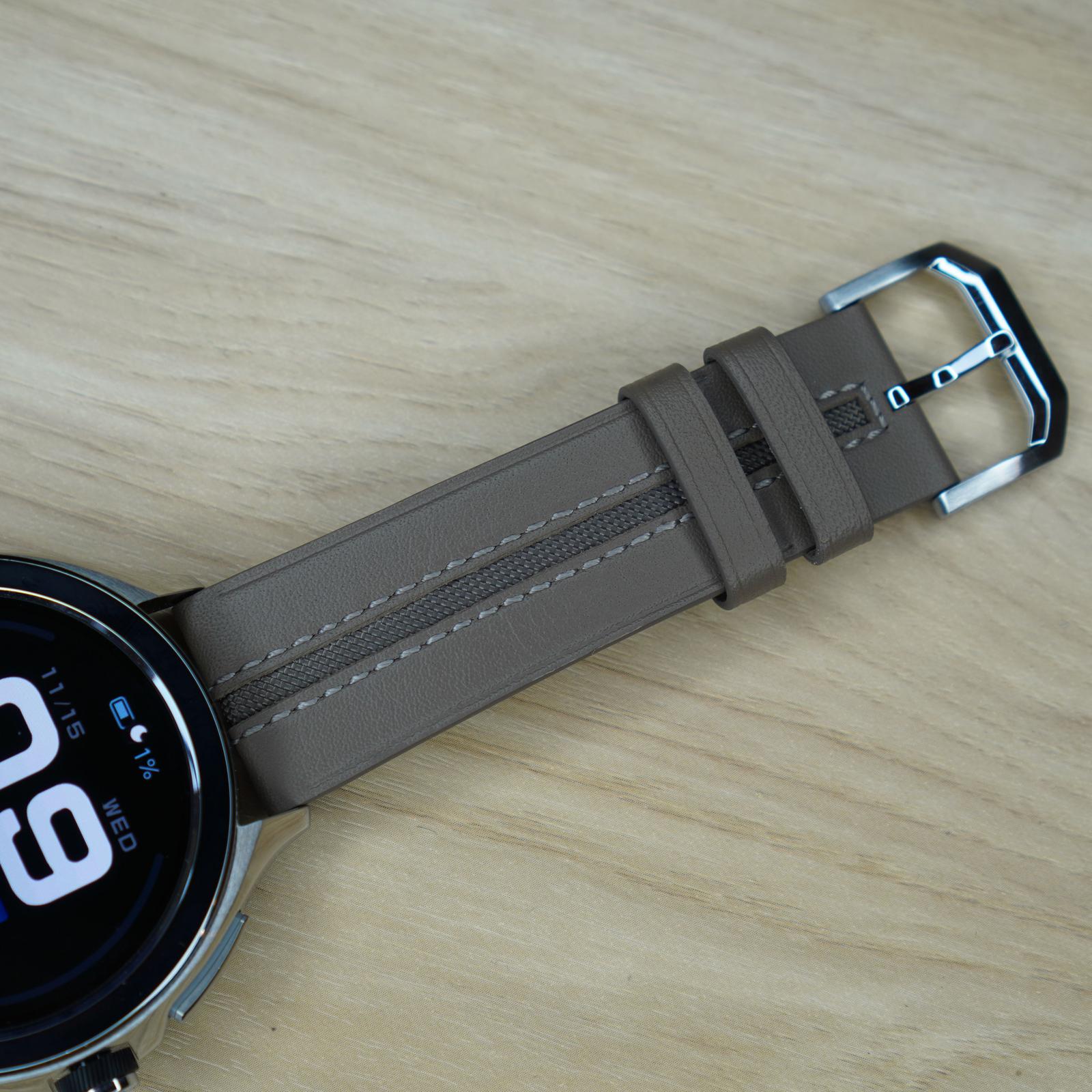 Eu am testat modelul argintiu, care arată bine. Are un bezel care îi dă aspect de ceas serios, dar și discret, o carcasă de inox cu diverse prelucrări și fațete, iar calitatea construcției este bună. Bezel-ul este un pic înălțat fața de ecran, butoanele au feedback plăcut la apăsare și o cursă reglată, zic eu, exact la lungimea care trebuie pentru a ști că le-ai apăsat chiar și când vine vremea de purtat mănuși. În centru pe lateral este o coroană, un buton rotativ pentru scroll rapid prin meniuri și notificări, dar care poate fi și apăsat cu rol global de Back.