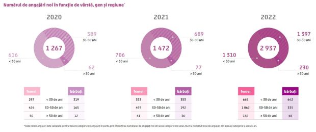 🧍♂️ Angajați și Societate este ultimul pilon al strategiei de sustenabilitate. La final de 2022, raportul spune că PENNY avea în România 6.596 angajați în 336 de magazine și 4 centre logistice din țară.