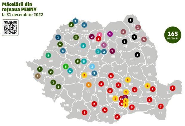 Nu doar atât, dar au și programe și reguli clare pentru furnizori, de exemplu pentru agricultură sustenabilă și asigurarea că animalele de la ferme sunt tratate bine. Au și 165 de măcelării partenere ale fermierilor și producătorilor locali într-un an de la 165 la 190 în 2023. Mai mult de jumătate din magazinele PENNY au o măcelărie operată de un partener chiar în spațiul magazinului.