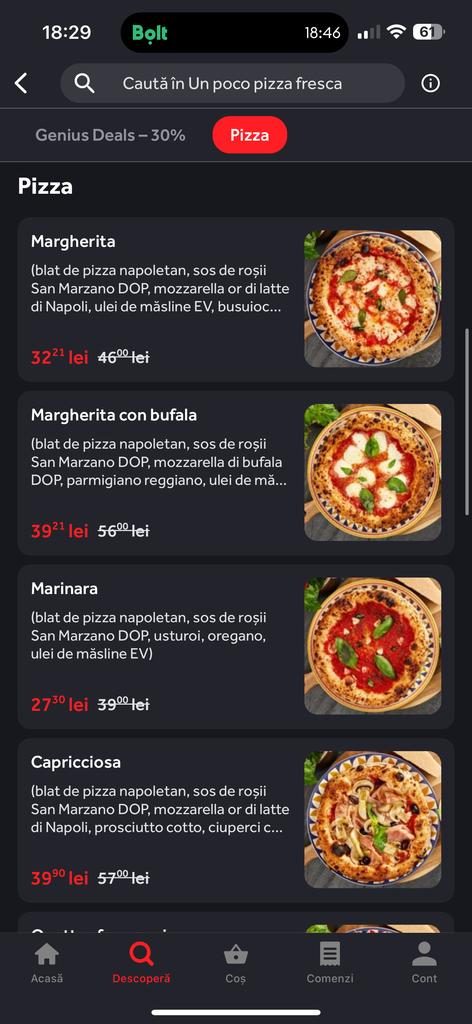 În același timp, Un Poco Pizza Fresca are 30% reducere în Tazz și nici o reducere în Bolt Food.