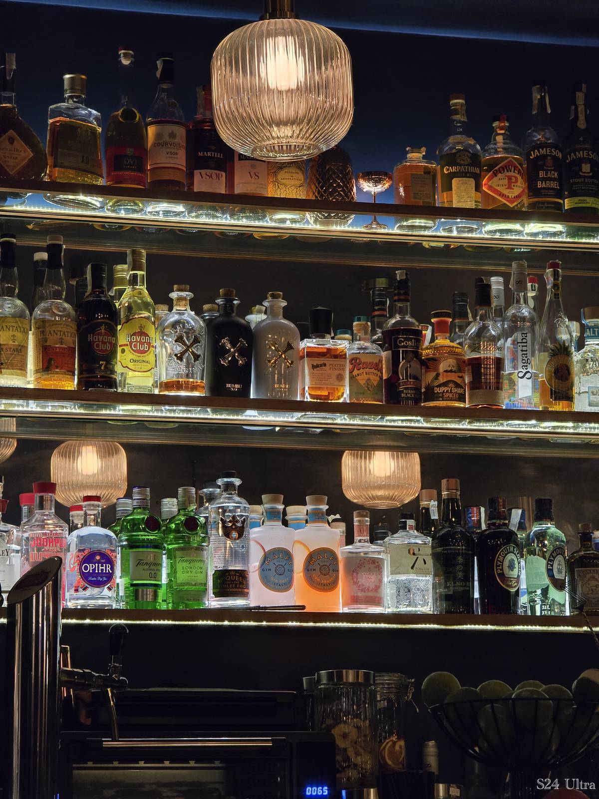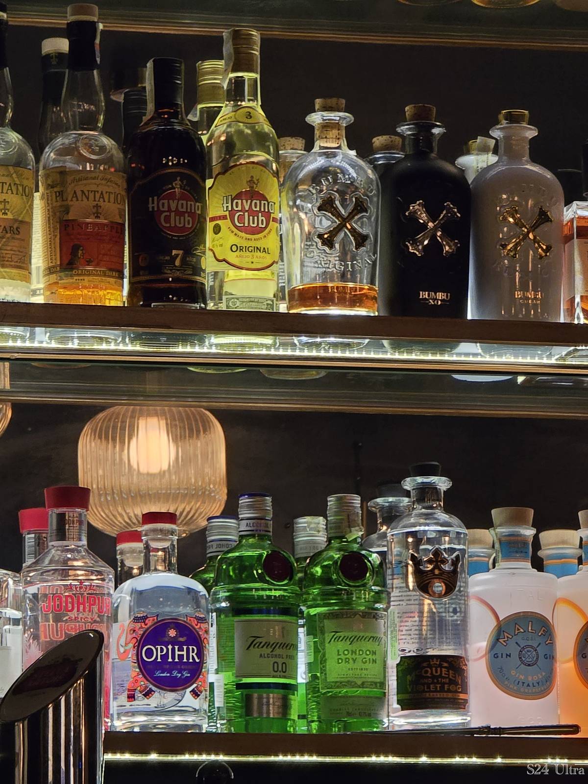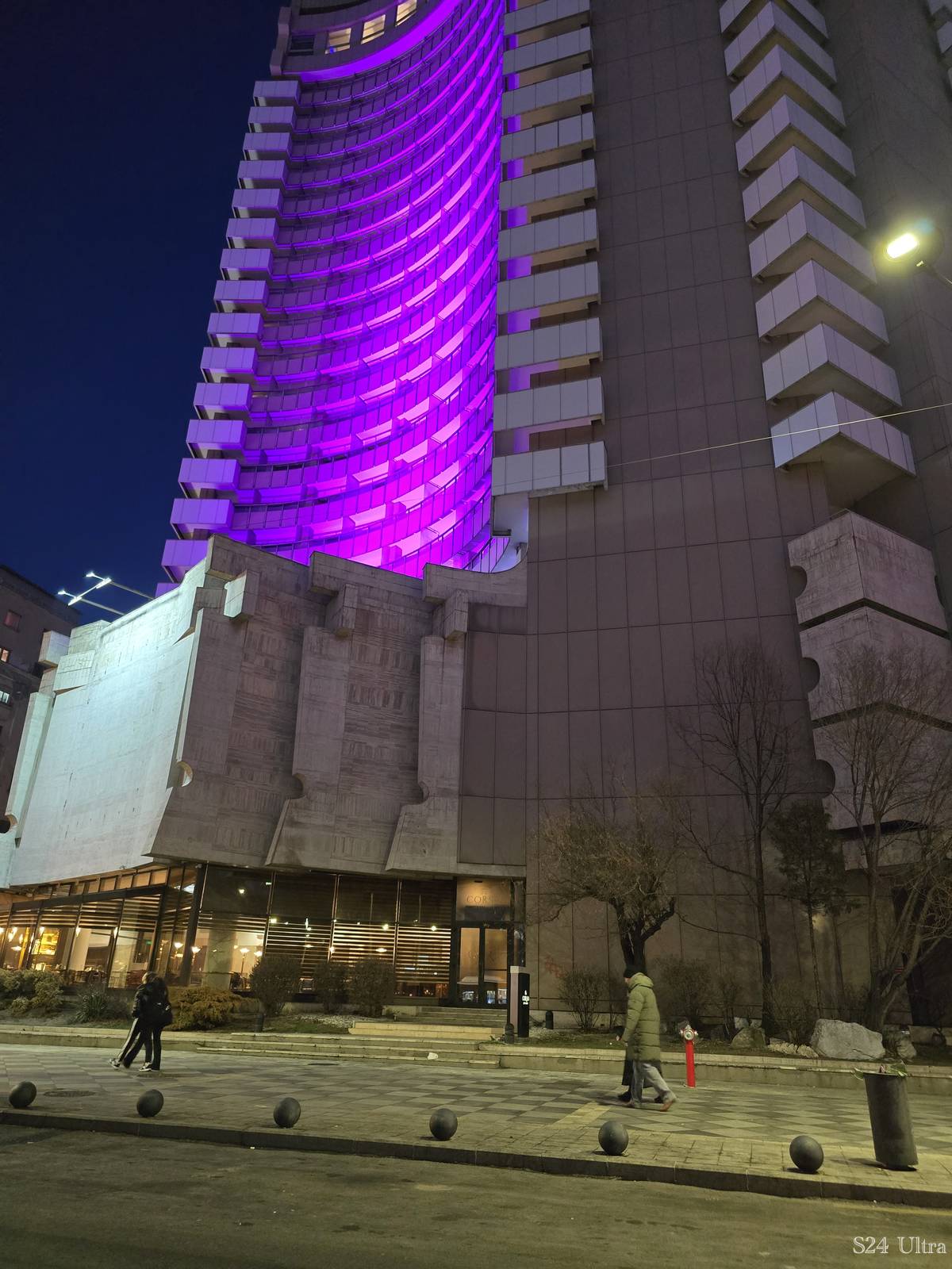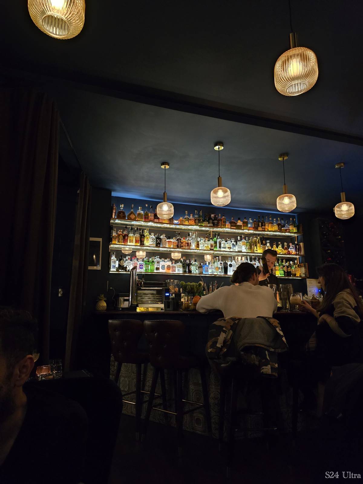 Am fost plăcut surprins de fotografiile de noapte. Uitați-vă mai sus la cea cu hotelul Intercontinental. Toată acea iluminare mov a fațadei este bine surprinsă și nuanța este cea reală. Apoi, văd texturi fine bine prinse în pavaj și în peretele hotelului, iar persoanele care merg pe stradă sunt bine “împietrite”. Cocktail-urile au ieșit și ele foarte bine, deși era chiar întuneric acolo.