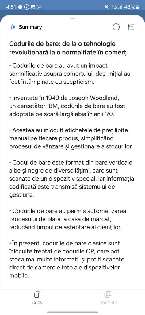 Aici în România mai există și alte funcții AI disponibile. Browserul Samsung Internet (pe care majoritatea posesorilor de Samsung îl folosesc) poate rezuma pagini web scrise în română. Rezumatul este foarte bun și poți alege dintre unul scurt sau unul mai lung.