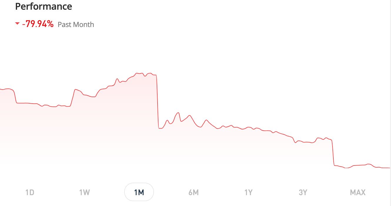 De atunci scad constant, iar pe 15 martie urmează o cădere semnificativă de la 0,32 la 0,15 dolari. Astăzi au scăzut și sub 0,14 USD.