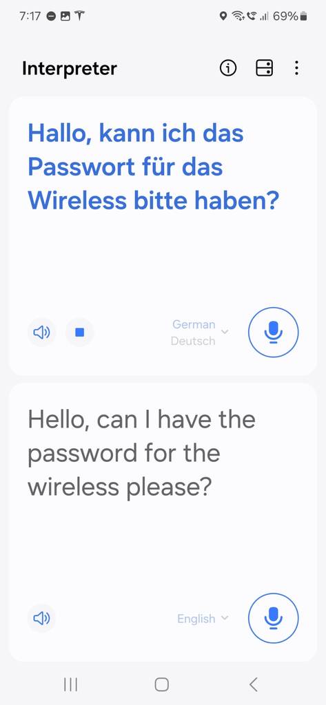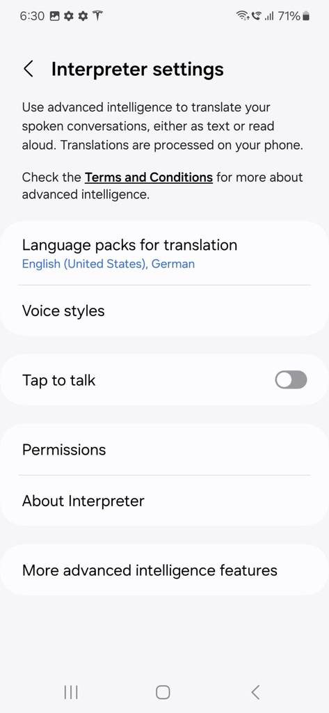 Interpretorul este de asemenea o unealtă rapidă. Nu include momentan și limba română. O veste bună este că Samsung a declarat oficial că intenționează să adauge română în acest an. De la lansarea seriei S24 și până astăzi, au mai adăugat trei limbi în lista celor disponibile, iar un comunicat trimis cu această ocazie spune: