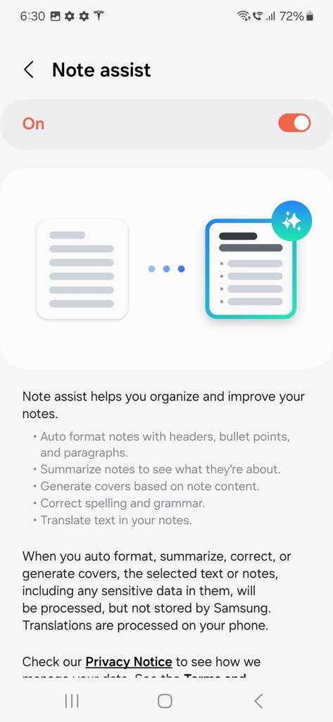 Oricum, traducătorul în timp real, rezumatele din browser, traducerile telefonice sau din mesagerie și AI-ul generativ pentru fotografii, poate și programul de rezumare și formatare din Samsung Notes, dacă îl folosiți, sunt aplicații foarte bune și în general performante.