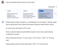 Și totuși, 9 răspunsuri greșite. Când întrebi ceva pe Gemini, îți dă înapoi trei variante de răspuns. De obicei diferă exprimările. Acum, difereau calculele! În cele trei drafturi de răspuns, erau mereu alte rezultate. Un răspuns era de un milion de ori mai mare decât altul. Al treilea era de pur și simplu 1,34 Rm.