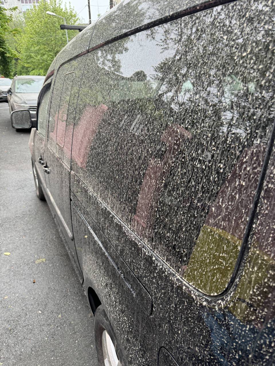 Acesta este praful dintr-o singură noapte. Ieri mașinile erau curate, după două zile de ploi. Astăzi dimineață arătau așa, ca niște gheparzi.