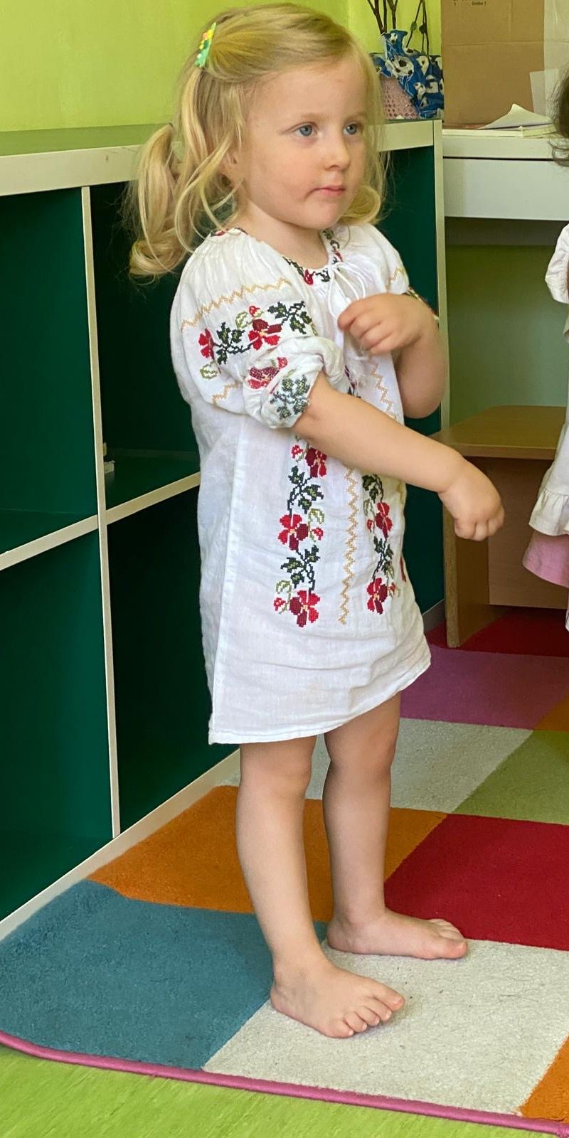 Între timp, iată o imagine cu Alice purtând o ie luată de pe lângă Voroneț și probabil dansând macarena:
