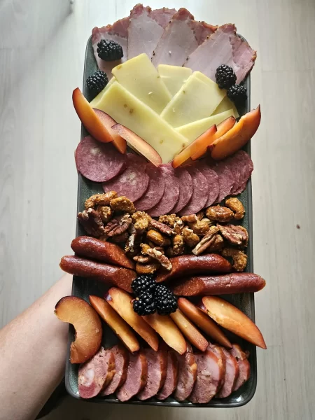 Totul a fost bun, în special cotletul de porc țărănesc și cârnații sticks crud uscați, plus cârnații Angus cu nucă. A făcut Matilda într-o zi un platouaș cu câteva felii de fructe, de brânză, niște alune și caju — a fost perfect.