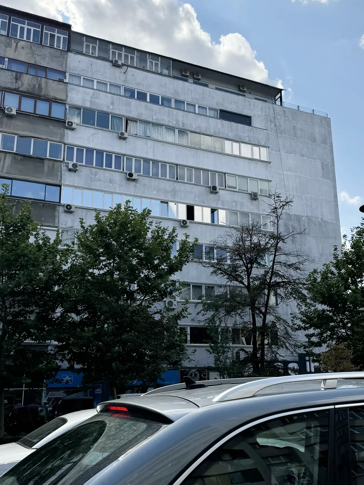 Blocul de la Nicolae Bălcescu 35 din centrul orașului, cam vizavi de cinema Scala, a fost acum câteva luni învelit într-o mare folie de șantier pe care scria cu litere de o șchioapă “Aici nu mai cade tencuiala”.