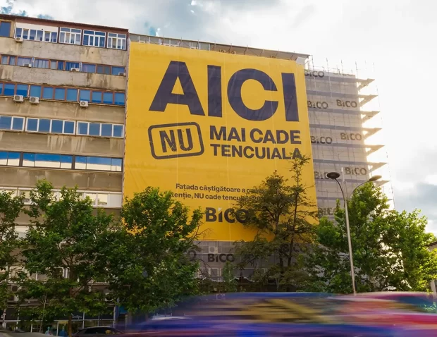 Sunt convins că, dacă îmi scoteam trafaletul de la debara, făceam treabă mai bună acolo decât meșterii de la Bico. Și nu cred că se mai rezolvă ceva. Schelele au fost date jos, clădirea e gata, Bico face un concurs de propuneri pentru a alege o altă clădire pe care să o înfrumusețeze în perioada următoare. În afara cazului în care plănuiesc să o revopsească folosind alpiniști, cred că așa va rămâne. Pe pagina lor de Facebook, proiectul este prezentat ca fiind încheiat cu succes.