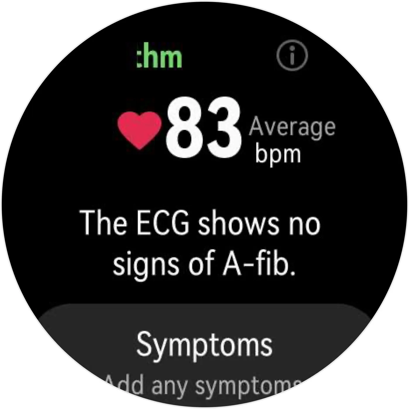 La comandă, ceasul îți face ECG. Trebuie să pui degetul pe buton timp de 30 de secunde, iar la final îți dă un raport pe care-l poate și exporta ca fișier în caz că vrei să-l trimiți vreunui medic. M-ar mira ca vreun medic să spună altceva decât “vino la mine să facem măsurătoarea cu aparatul meu”, dar ideea este că se poate.