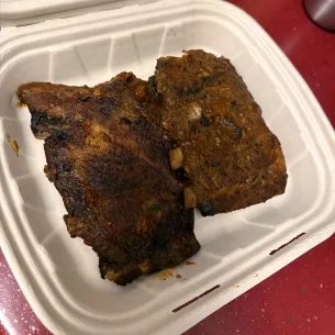 Porția este scumpă, costă 81 de lei dacă nu mă înșel, dar pot mânca lejer două persoane din ea și în preț intră și niște salată coleslaw și castraveți murați și o chiflă. Porția de coaste este de două ori mai mare decât cea din imagine.