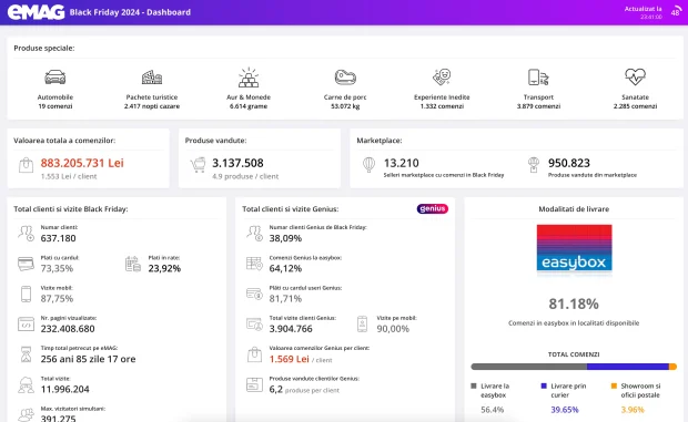 eMAG ajunge la 883 milioane la ora 23:40. Probabil vor depăși 900 de milioane în acest an, până închid ofertele. La anul ar putea ținti deja miliardul de lei într-o singură zi.