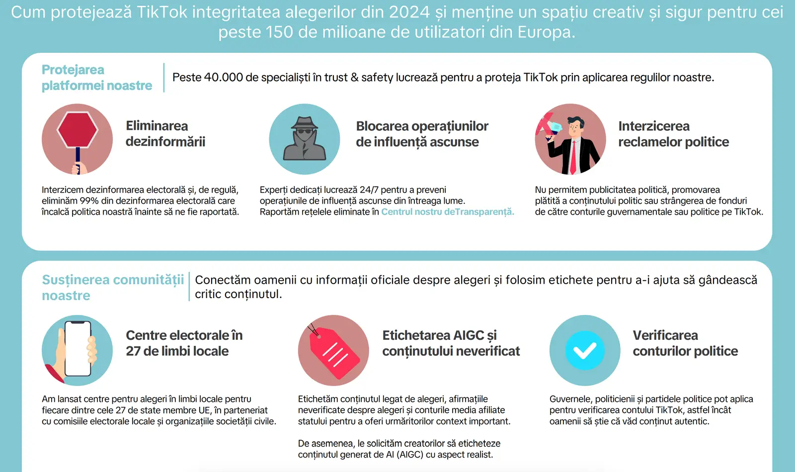 Revenind însă la TikTok, ei spun că au luat diverse măsuri precum: