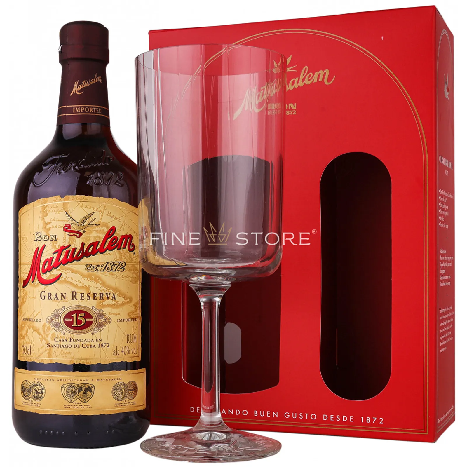 O idee bună de cadou poate fi romul Matusalem în varianta cu cutie și pahar inclus, ca să arate mai festiv.