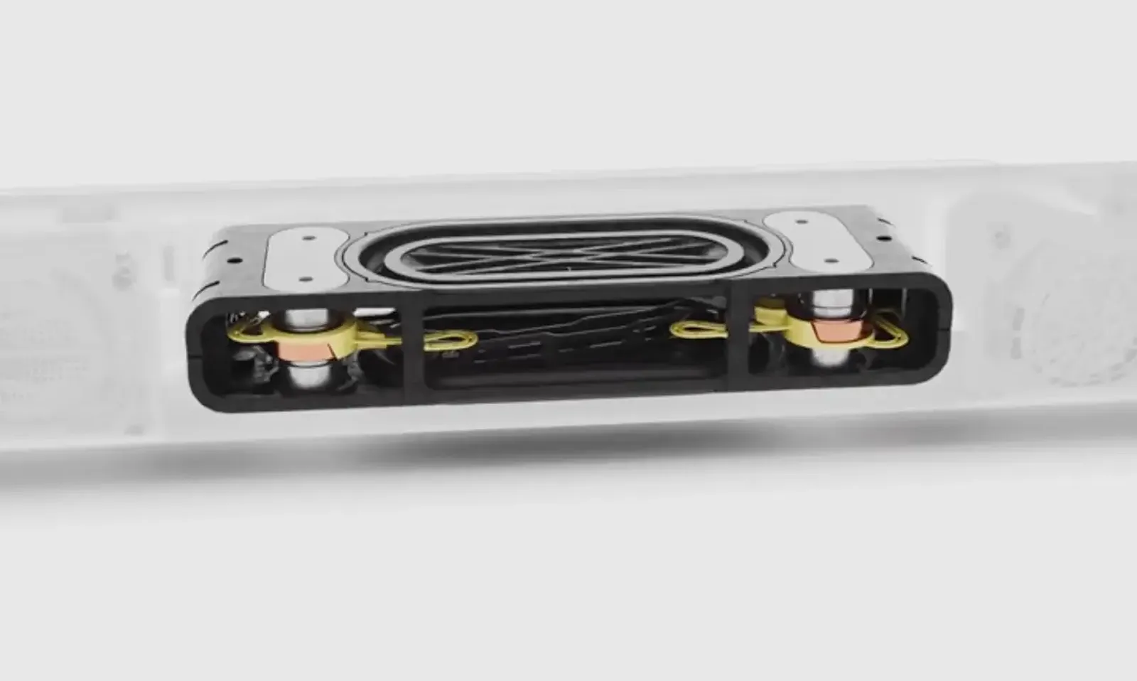 Unele difuzoare proiectează sunetul în sus, pentru a fi reflectat din tavan, altele în lateral, prin capete. Totul contribuie la oferirea unui sunet surround prin Dolby Atmos și Spatial Audio, dacă sursa permite asta.