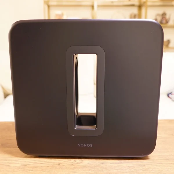 Ce-i drept, Sonos s-a chinuit să-i dea o formă arătoasă cu acest design rectangular cu colțuri rotunjite și gaură prin centru. Acolo se află cele două difuzoare puternice, unele eliptice de 5 x 8 inci, fiecare cu un amplificator propriu. Sunt așezate față în față într-un design care elimină distorsiuni, iar carcasa este bine închegată și Sub 4 nu vibrează în mod nedorit.