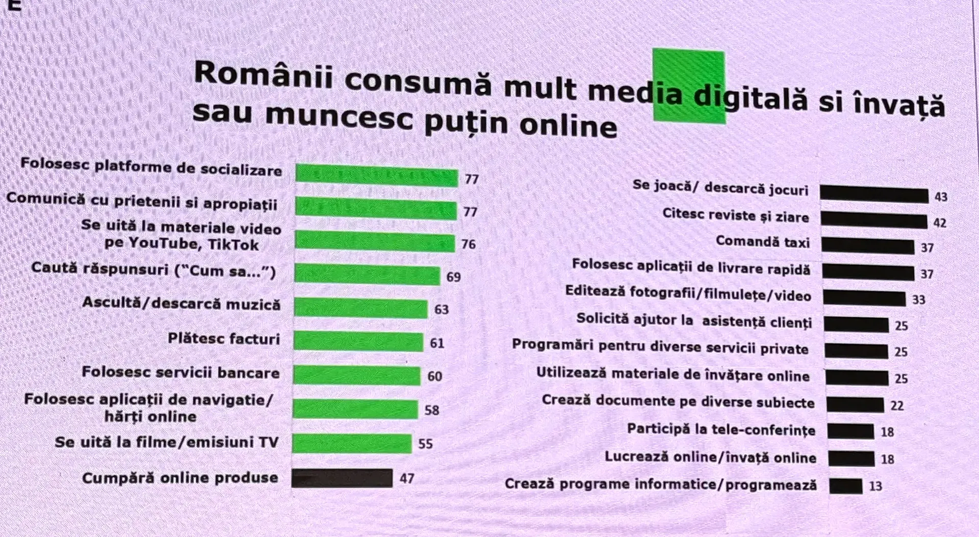 ➡️ Avem Internet de mare viteză și telefoane/computere și pătrunderea 5G-ului, dar majoritatea oamenilor le folosesc pentru a se uita pe TikTok și a vorbi cu prietenii. Nu o zic eu, o zic studiile în care acestea sunt pe primele locuri, în timp ce rezolvarea unor probleme sunt pe ultimul loc.