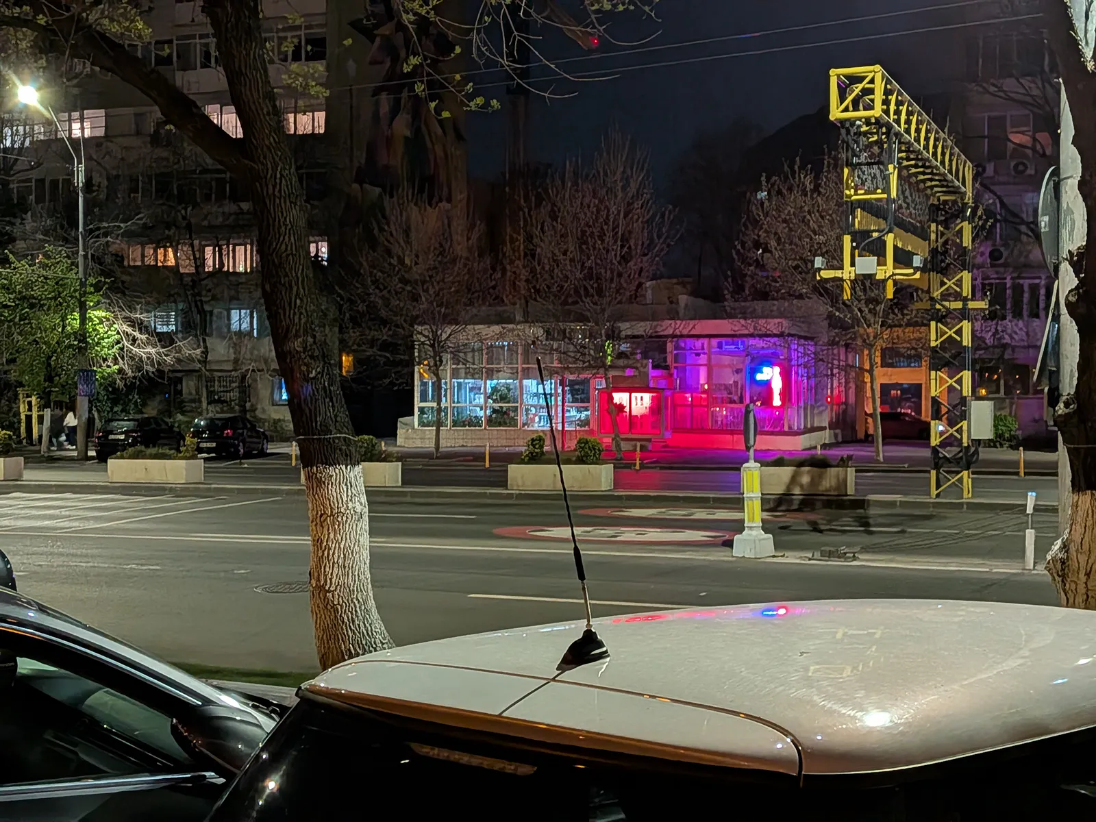 În primul rând, nu activează singur modul Night Sight de fotografiere de noapte, ci trebuie să nu uiți să faci tu asta din meniu, de fiecare dată. Pe modul standard, așa cum se deschide camera foto, imaginile sunt întunecate și lipsite de detalii fine și cu un halou inestetic în jurul multor surse de lumină.