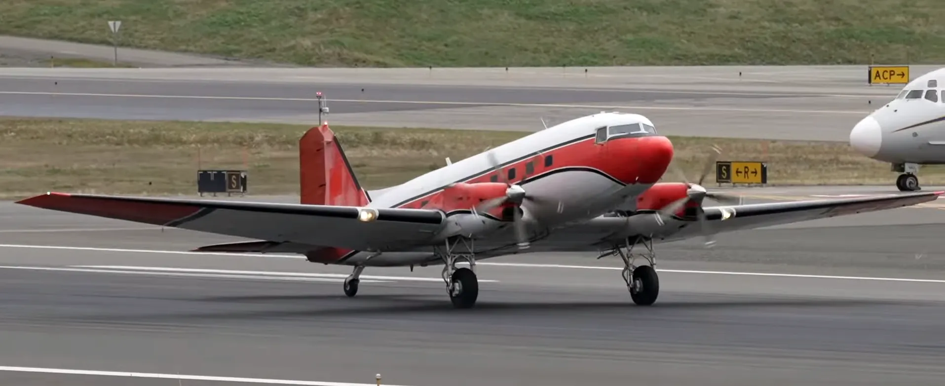 Un DC-3! Acestea sunt avioane construite de Douglas între 1936 și 1942 și încă zboară și astăzi. Cred că le veți recunoaște din diverse filme foarte vechi sau de război, fiind utilizate și în domeniul militar.