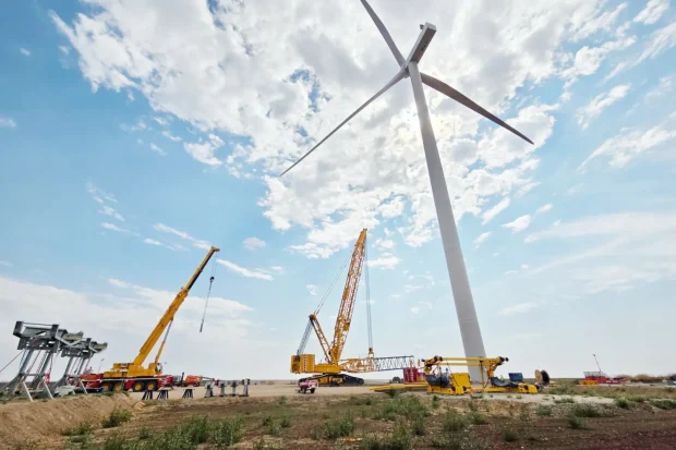 Turbinele V162 sunt din cele uriașe, 162 de metri în diametru pentru rotor, seamănă cu cele de mai jos: