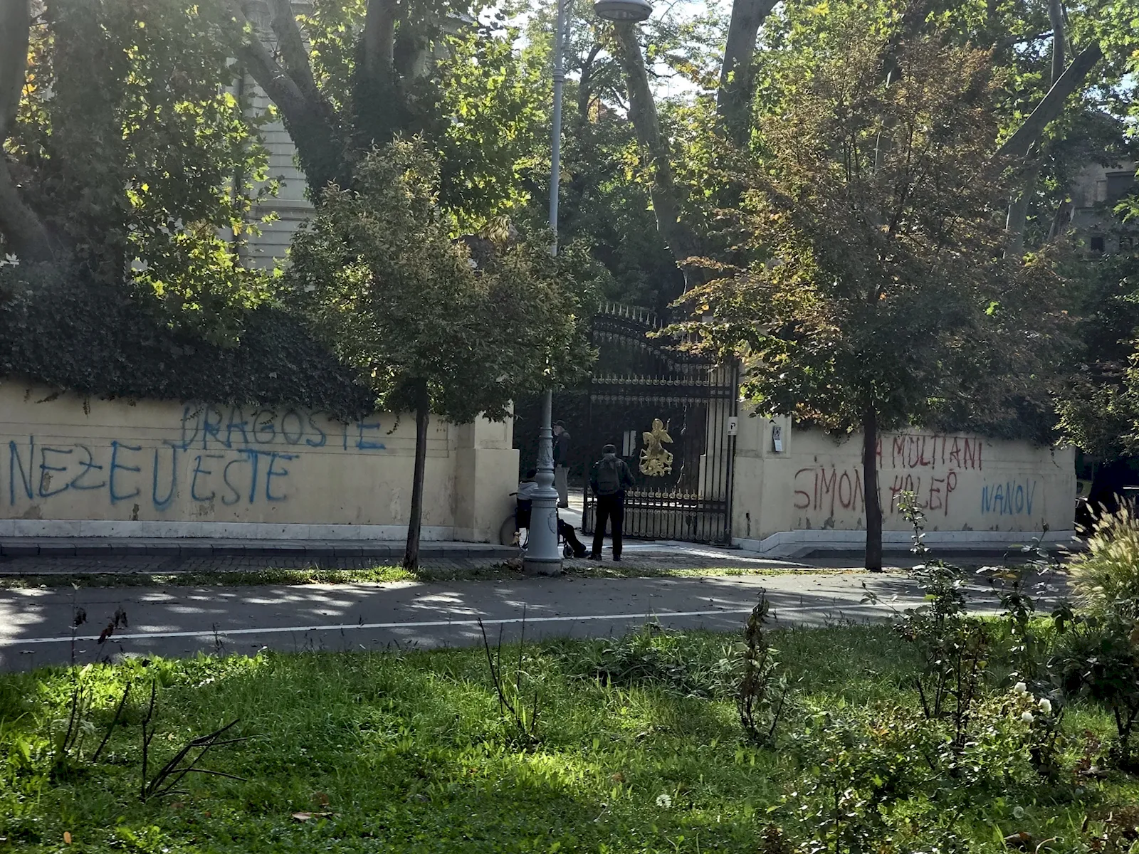 Nu știu când au fost scrise cele de mai sus pe gard, dar pe 30 octombrie, când am trecut din nou pe acolo, gardul încă era neschimbat. Asta este și mai ciudat pentru că mă așteptam să fie revopsit în secunda doi, dar iată că două două săptămâni nu s-a schimbat nimic. O fi pentru că-i monument istoric și trebuie cine știe ce anchetă și aprobări?