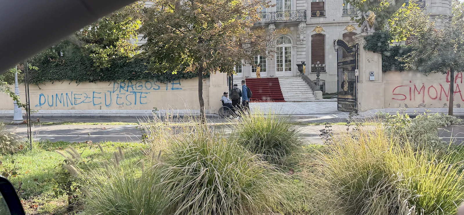 Am trecut pe 11 octombrie pe acolo, prin Piața Victoriei, și ce să vezi? Litere de o șchioapă pe vila lui Becali de lângă Guvern, un vandalism care nu știu când a avut loc, dar arată rău. Cineva a scris “Dumnezeu te iubește” și “La mulți ani Simona Halep”.