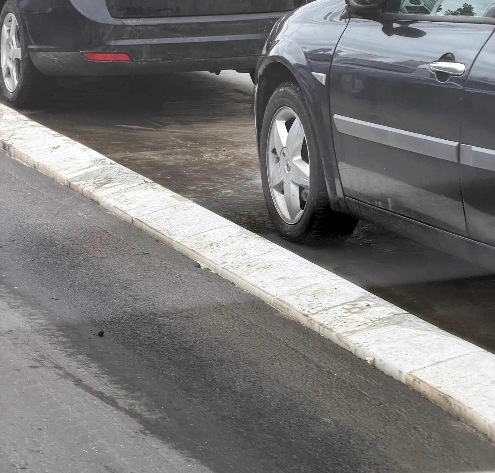 De ce ai pune trotuare albe într-un loc intens circulat, dintr-o piatră din asta poroasă și care deci se va înnegri în timp record? Nu știu. Oricum când plouă deja arată rău.