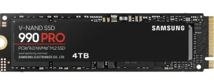 ➡️ Ce stocare pui pe un astfel de computer? Ehm… un singur SSD Samsung 990 PRO de 4 TB, care costă 1600 de lei. Nici măcar nu este PCI-Express 5.0, ci doar 4.0. Un astfel de model duce 7 GB/s scriere și citire, ceea ce de obicei este mai mult decât are nevoie orice program, dar sunt surprins că nu a luat măcar două pentru un RAID. Poate are propriile SSD-uri luate din alte surse și le va folosi pe acelea.