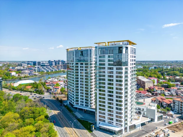 Nu mai știu de la cine am văzut anunțul de închiriere, dar este vorba de un penthouse în One Verdi Park, care este clădirea de mai jos de pe Barbu Văcărescu 164, acolo unde bulevardul face o curbă largă.