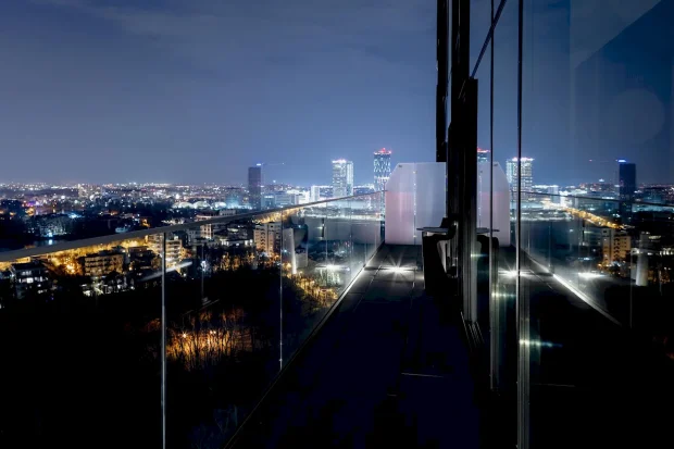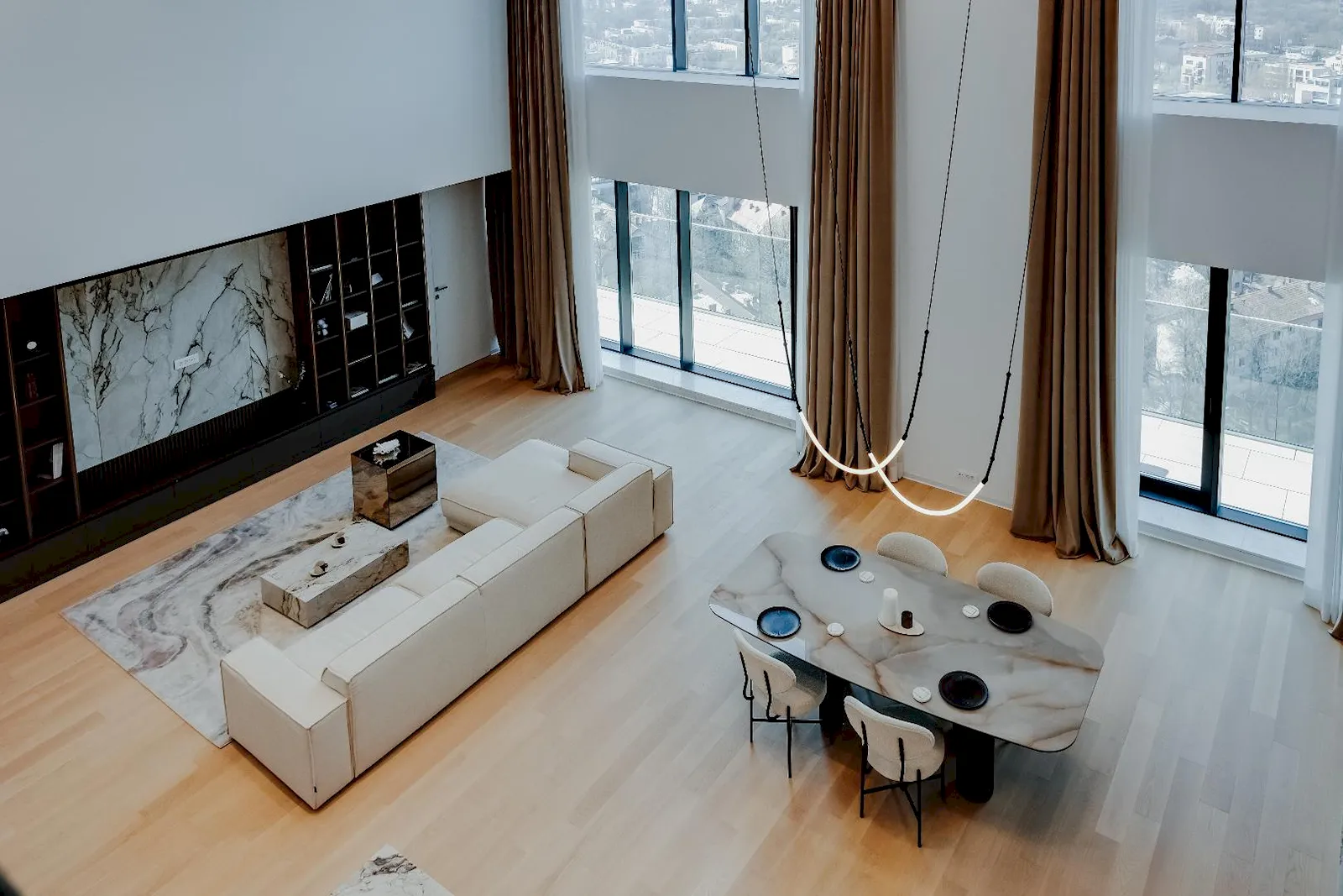 Apartamentul este un duplex la etajul 19 și 20. Din ce văd în fotografii, sufrageria este înaltă cât două nivele, iar nivelul al doilea este mai micuț ca suprafață din acest motiv.