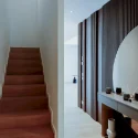 Cred că are ceva mai mult de două băi apartamentul acesta. Are totuși patru dormitoare poziționate pe două niveluri.