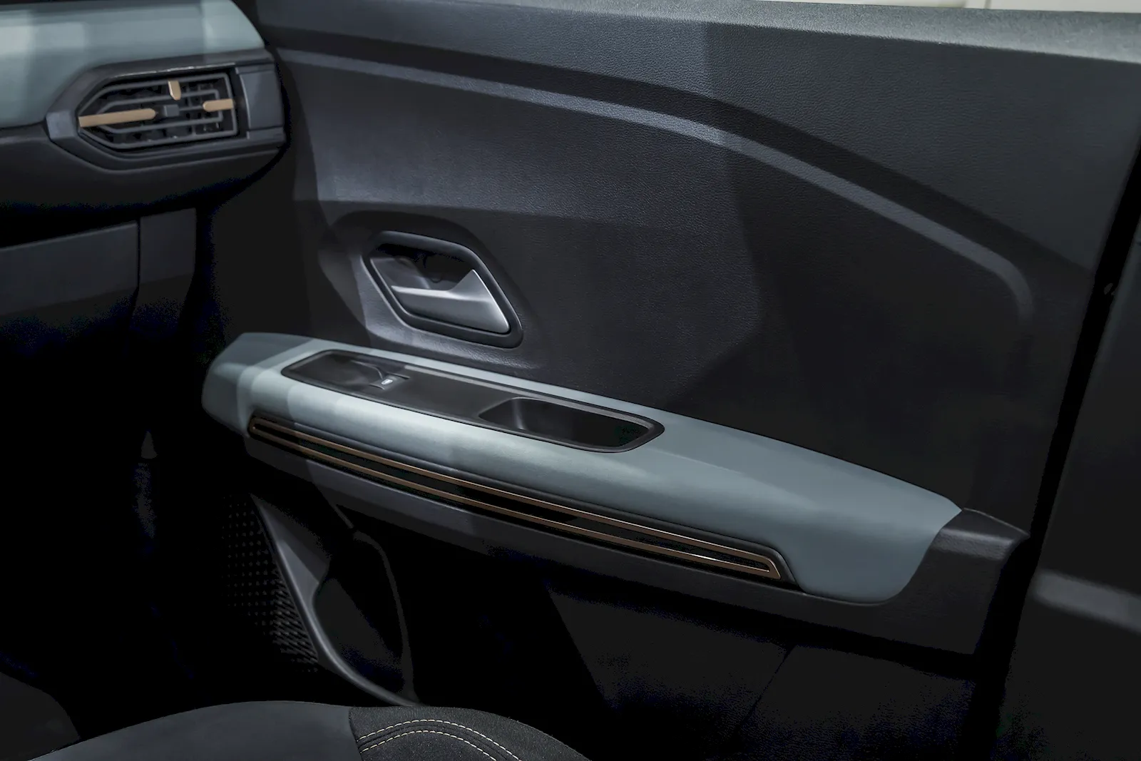 Materialul din jurul proiectoarelor și carenajul roților este acel Starkle introdus odată cu noul Duster, un material făcut și cu plastic reciclat, cu un aspect cu ușoare picățele albe și care este nevopsit. Avantajul său este că eventualele zgârieturi nu au ce vopsea să ia sau ce aspect să strice.