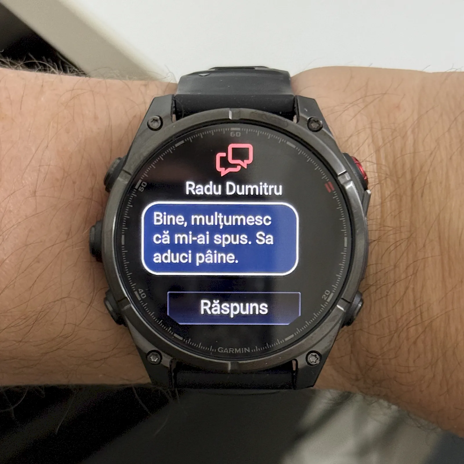 Dar, în principiu, simt că acest ceas Fenix 8 Pro a fost gândit pentru alte scenarii și nevoi de comunicație, mai degrabă ca un dispozitiv de SOS și check-in cu familia/prietenii, nu pentru a sta conectat la mondenități în absența telefonului.