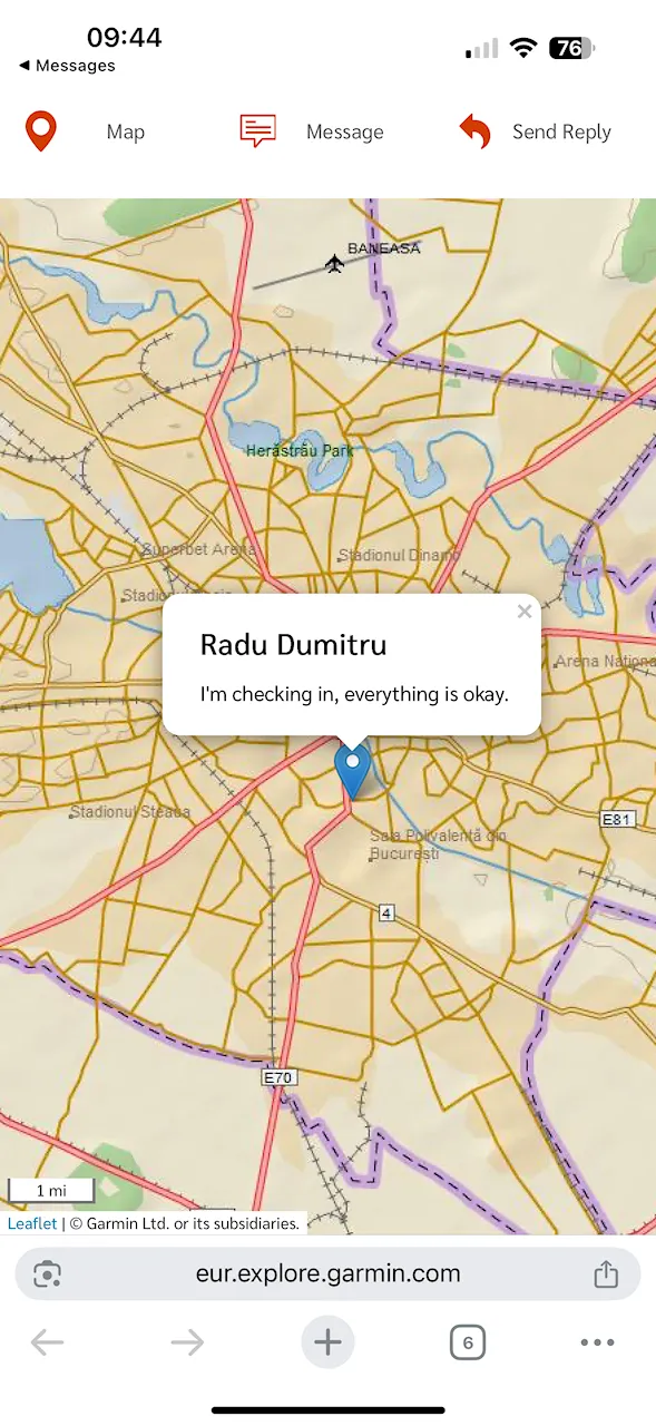 Iar prin linkul de SMS poți trimite răspuns înapoi, deci nu este musai nevoie de Garmin Messenger pentru un mesaj, ci este doar complicat fără el: