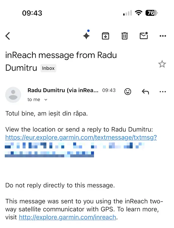 Nu e suficient să comunici așa cum zice Radu în articol. Pentru genul ăsta de situații ai nevoie de conexiune satelit, să poți suna și să fii sunat, nu să scrii soției și să facă ea ce poate. Se pot întâmpla multe și să ai nevoie de salvamont, oricât de experimentat ai fi (îți poți rupe ceva, îți luxezi o gleznă, ți se face rău etc.). Echipamentele astea sunt pentru urgențe și le iei în speranța că nu vei avea nevoie de ele, nu ca să le folosești des.