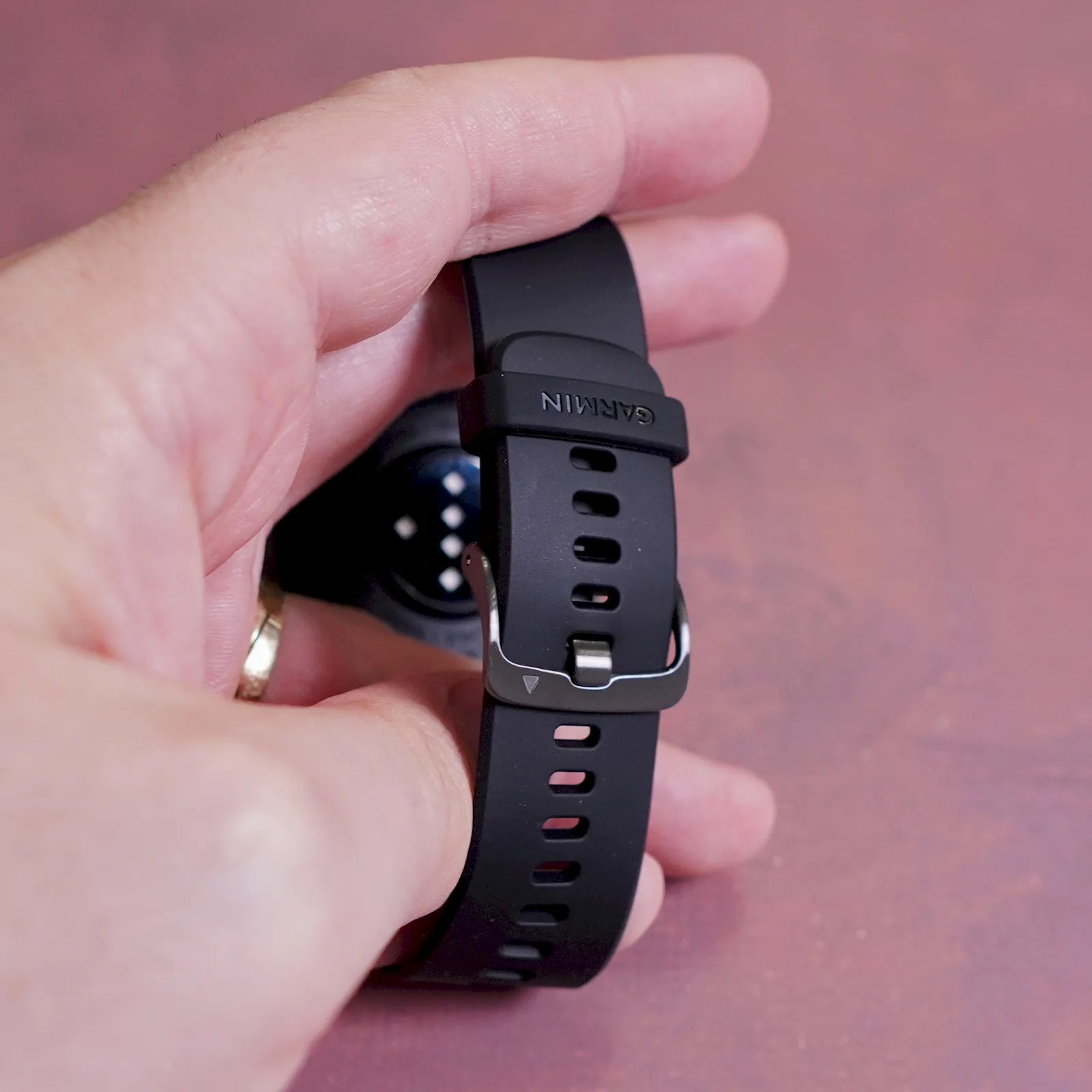 Design-ul este simplu față de modelele Garmin mai avansate, dar totuși cu un aspect premium. Butoanele de pe dreapta, deși diferite ca design, sunt elegant prelucrate și integrate în carcasă. Carcasa în sine reușește să evite design-ul prea de jucărie al unui Pixel Watch și design-ul prea geometric al unui Samsung Watch8. Acel șanfren de pe margine îi dă un aspect plăcut și un joc de lumină atunci când aceasta cade cum trebuie pe ceas.