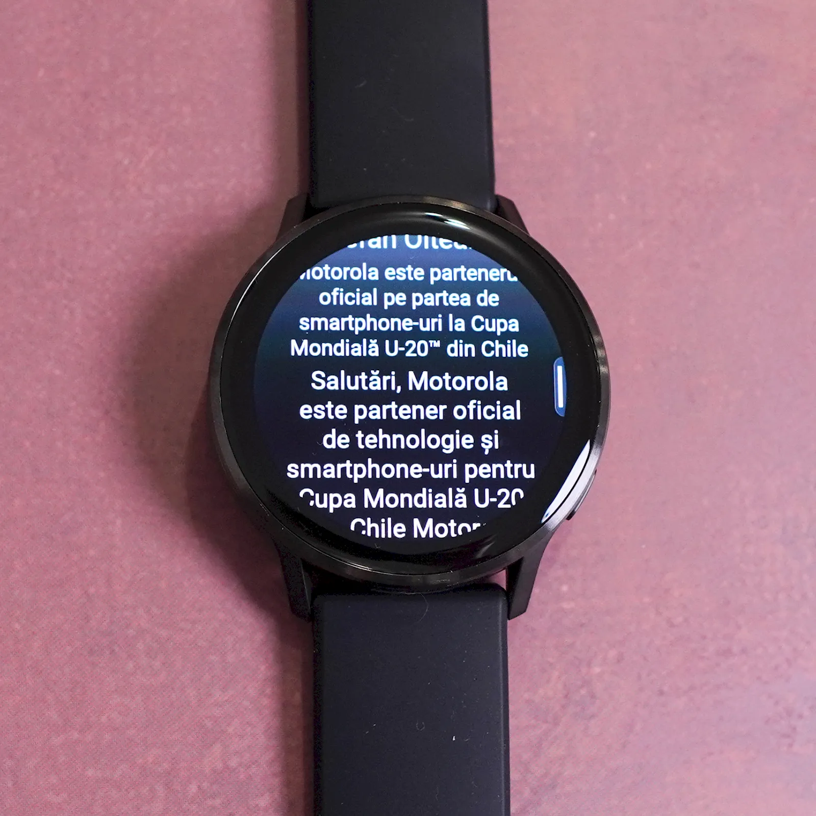 Ceasul poate fi utilizat cu Android și iOS, dar iOS are limitări pentru dispozitive 3rd party. Uniunea Europeană cere eliminarea lor, dar momentan doar pe Android poți da și reply din ceas la o notificare și poți vedea imagini primite pe anumite programe.