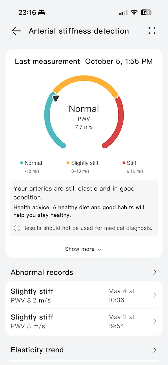 Funcția de detectare a rigiditatii arteriale e prezenta de ceva timp pe ceasurile Huawei. Nu știu dacă pe toate, dar cu siguranță pe modelele mai noi (Huawei watch 4 pro sigur).