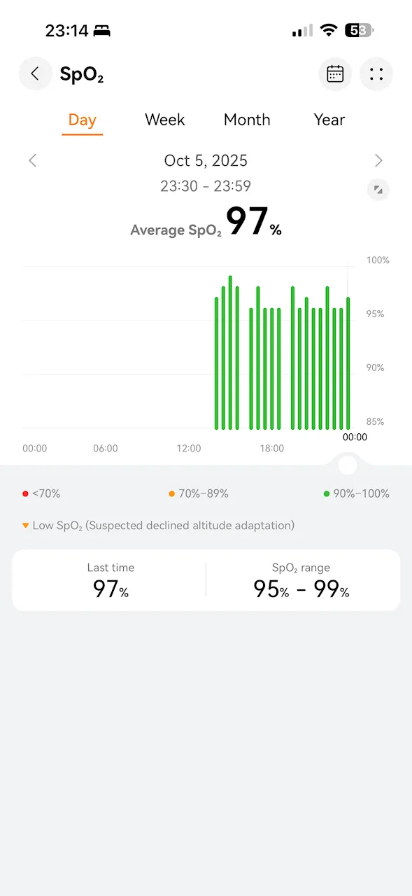 Pentru că include acea analiză de rigiditate a venelor, pe care nu am mai văzut-o pe alte ceasuri, cred că este cel mai complex din piață în astfel de măsurători de sănătate. De asemenea, acestea sunt foarte ușor de făcut și nu trebuie să apeși simultan cu mai multe degete pe mai multe butoane sau alte asemenea combinații, ci doar cu un deget pe X-Tap (sau deloc, dacă se face automat măsurătoarea pe încheietură).