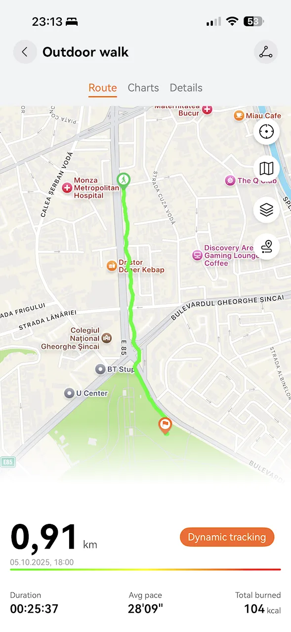 Există și un modul mare de Golf, cu hărți pentru mii de terenuri din lume, pentru cei cu astfel de activități. Eu am folosit mai degrabă Outdoor Run până la grădiniță pe ploaie și fugit înapoi cu copilul în brațe. A măsurat bine totul.