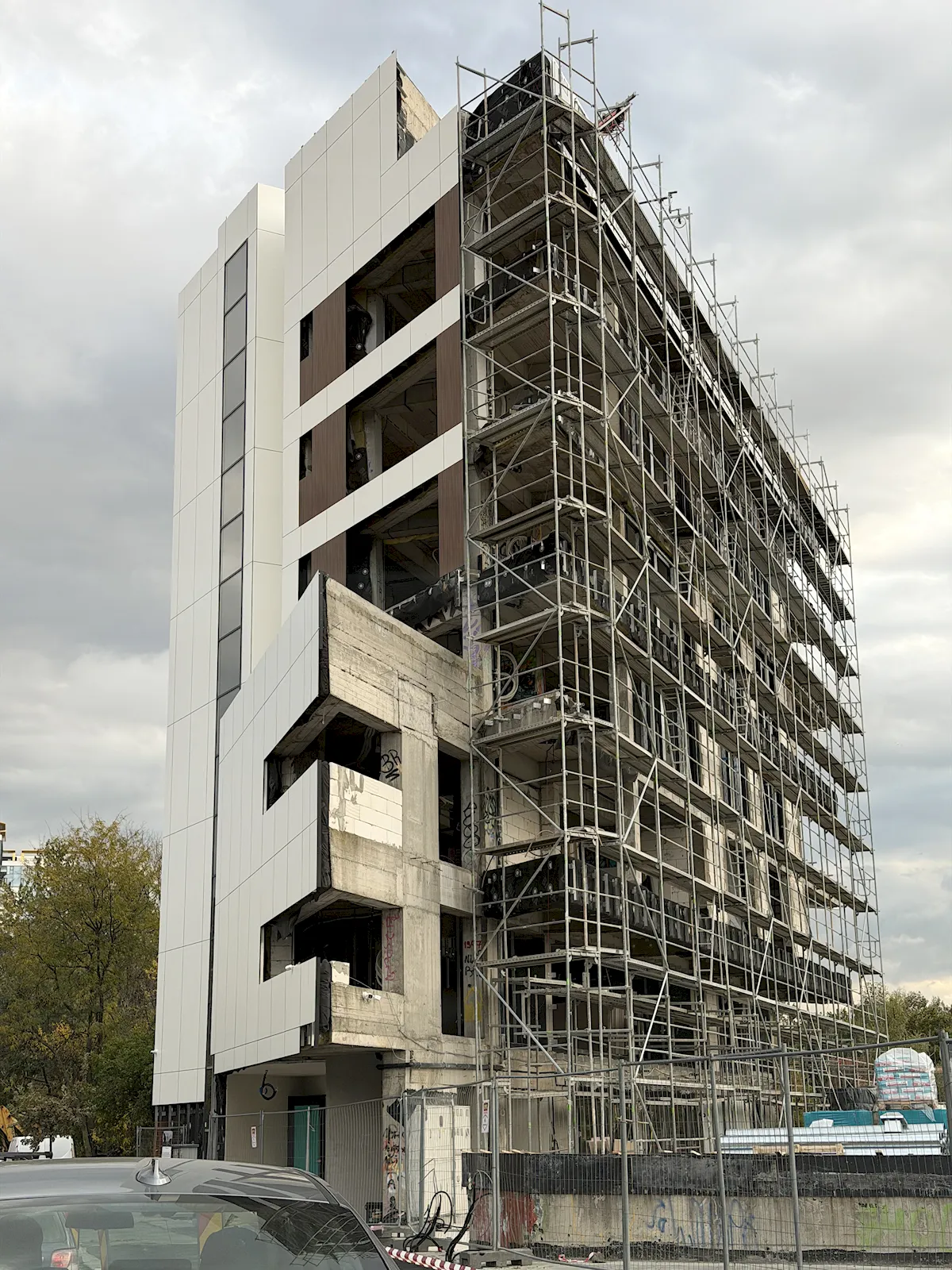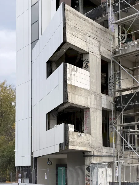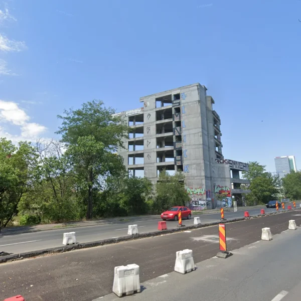 Era chiar bine poziționată acolo, cu vedere la lac și la clădirile de sticlă de la Aurel Vlaicu. Sunt vreo 15 ani de când este însă abandonată, cu graffiti pe la fiecare etaj, gunoaie aruncate în interior și restul lucrurilor uzuale pentru așa ceva. Autorizația inițială de construcție a fost eliberată în decembrie 2008 și prelungită în 2010 și 2013